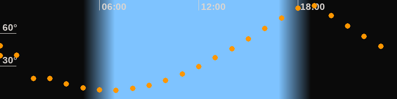 | Höchster Stand (Kulmination) | 18:37 Uhr (h = 86,7°) |
