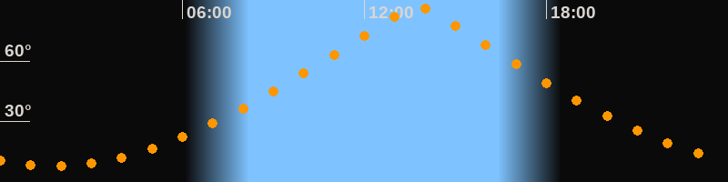 | Höchster Stand (Kulmination) | 13:44 Uhr (h = 86,7°) |
