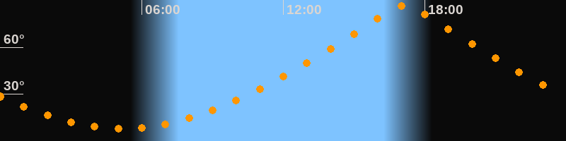 | Höchster Stand (Kulmination) | 17:10 Uhr (h = 86,7°) |