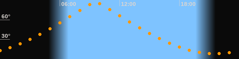 | Höchster Stand (Kulmination) | 09:34 Uhr (h = 86,7°) |