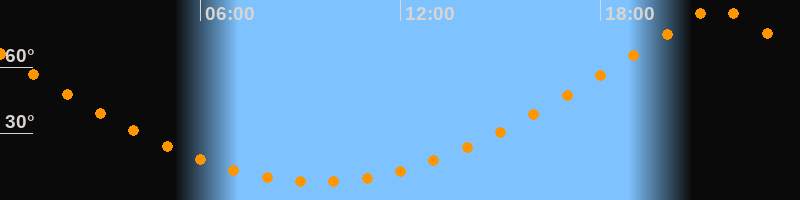 | Höchster Stand (Kulmination) | 21:30 Uhr (h = 86,7°) |