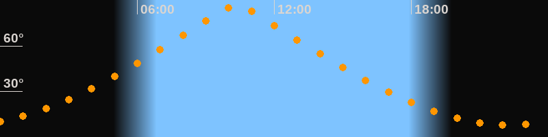 | Höchster Stand (Kulmination) | 10:20 Uhr (h = 86,7°) |