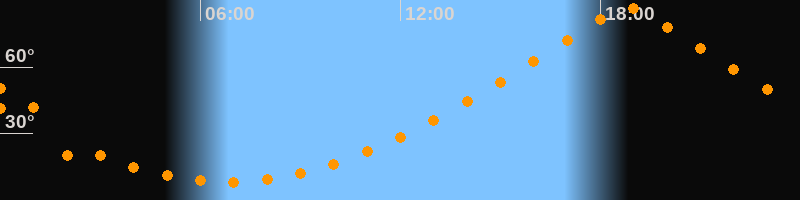 | Höchster Stand (Kulmination) | 18:49 Uhr (h = 86,7°) |