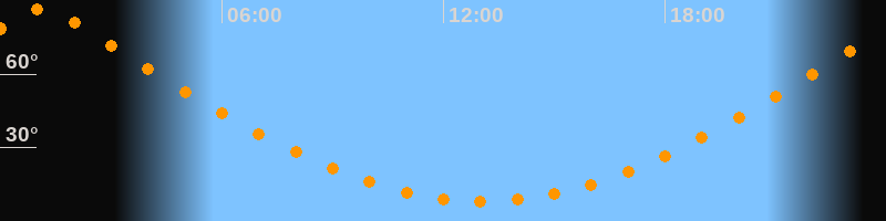 | Höchster Stand (Kulmination) | 01:04 Uhr (h = 86,7°) |