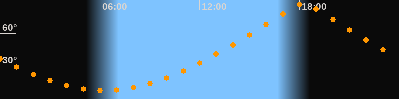 | Höchster Stand (Kulmination) | 18:14 Uhr (h = 86,7°) |