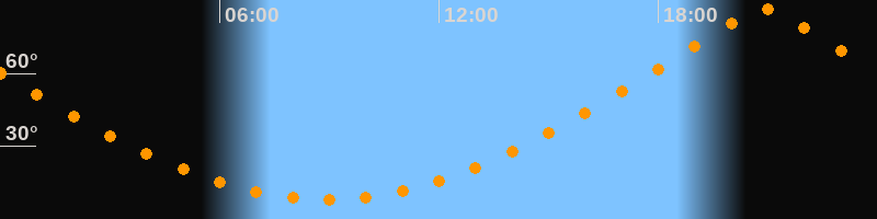 | Höchster Stand (Kulmination) | 20:53 Uhr (h = 86,7°) |