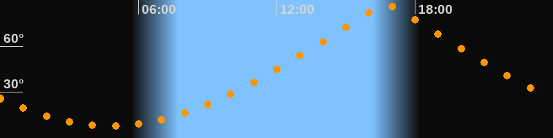 | Höchster Stand (Kulmination) | 16:45 Uhr (h = 86,7°) |