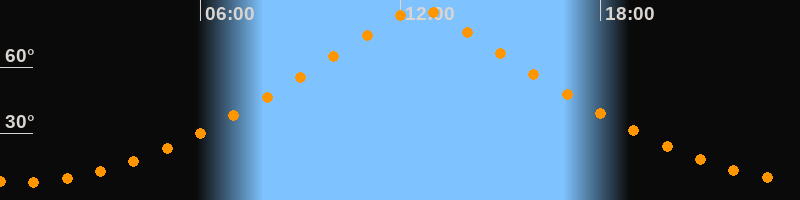 | Höchster Stand (Kulmination) | 12:34 Uhr (h = 86,7°) |