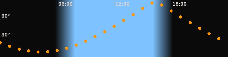 | Höchster Stand (Kulmination) | 16:18 Uhr (h = 86,7°) |