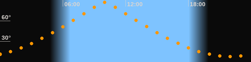 | Höchster Stand (Kulmination) | 10:01 Uhr (h = 86,7°) |