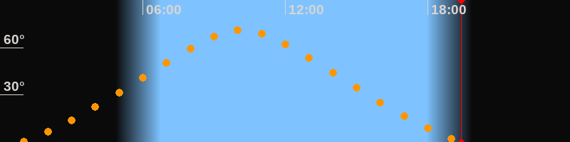 Höchster Stand (Kulmination)10:09 Uhr (h = 71°)
