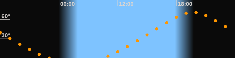 Höchster Stand (Kulmination)19:40 Uhr (h = 71°)