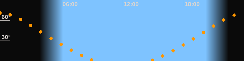 Höchster Stand (Kulmination)00:00 Uhr (h = 71°)