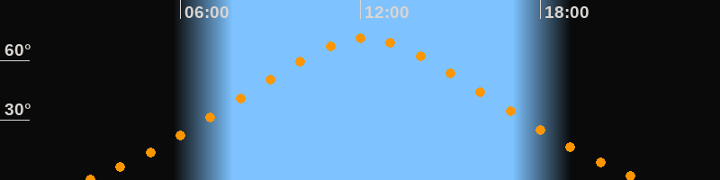 Höchster Stand (Kulmination)12:10 Uhr (h = 71°)
