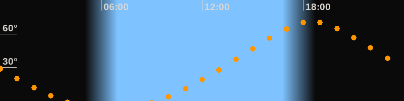 Höchster Stand (Kulmination)18:32 Uhr (h = 71°)