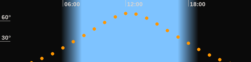 Höchster Stand (Kulmination)12:22 Uhr (h = 71°)