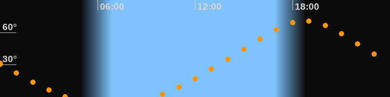 Höchster Stand (Kulmination)18:45 Uhr (h = 71°)