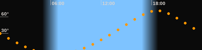 Höchster Stand (Kulmination)18:38 Uhr (h = 71°)