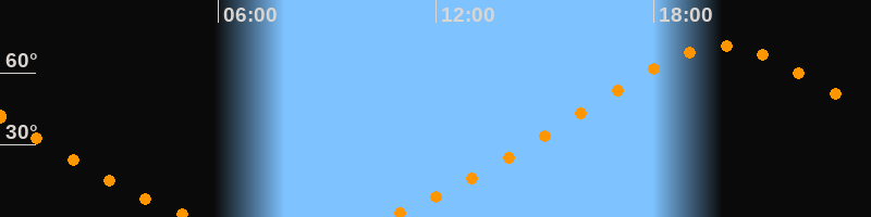 Höchster Stand (Kulmination)19:54 Uhr (h = 71°)
