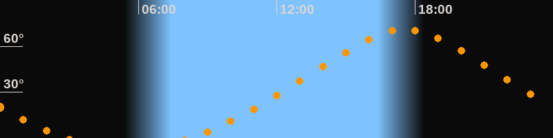 Höchster Stand (Kulmination)17:33 Uhr (h = 71°)