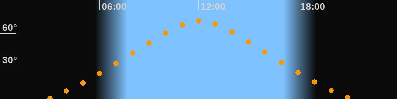 Höchster Stand (Kulmination)12:02 Uhr (h = 71°)