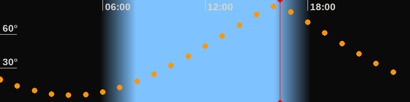 | Höchster Stand (Kulmination) | 16:07 Uhr (h = 84,7°) |