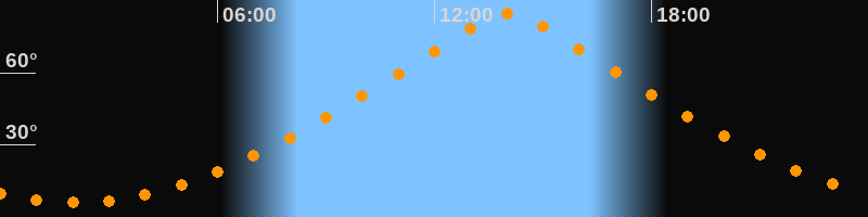 | Höchster Stand (Kulmination) | 14:02 Uhr (h = 84,7°) |