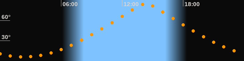 | Höchster Stand (Kulmination) | 14:19 Uhr (h = 84,7°) |