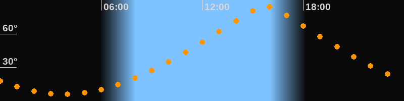 | Höchster Stand (Kulmination) | 15:46 Uhr (h = 84,7°) |