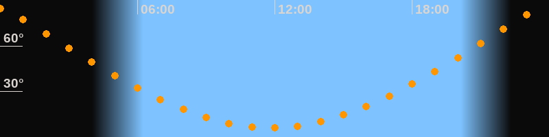 | Höchster Stand (Kulmination) | 23:48 Uhr (h = 84,7°) |