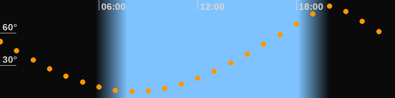| Höchster Stand (Kulmination) | 20:08 Uhr (h = 84,7°) |