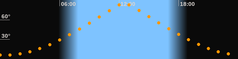 | Höchster Stand (Kulmination) | 12:30 Uhr (h = 84,7°) |