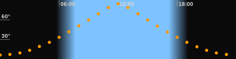 | Höchster Stand (Kulmination) | 11:59 Uhr (h = 84,7°) |
