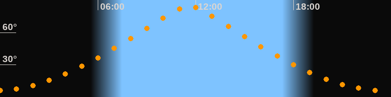 | Höchster Stand (Kulmination) | 11:35 Uhr (h = 84,7°) |