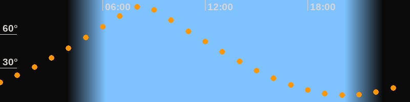 | Höchster Stand (Kulmination) | 08:18 Uhr (h = 84,7°) |