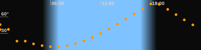 | Höchster Stand (Kulmination) | 18:25 Uhr (h = 84,7°) |