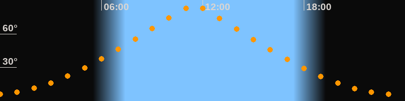 | Höchster Stand (Kulmination) | 11:28 Uhr (h = 84,7°) |