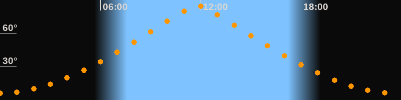 | Höchster Stand (Kulmination) | 11:49 Uhr (h = 84,7°) |