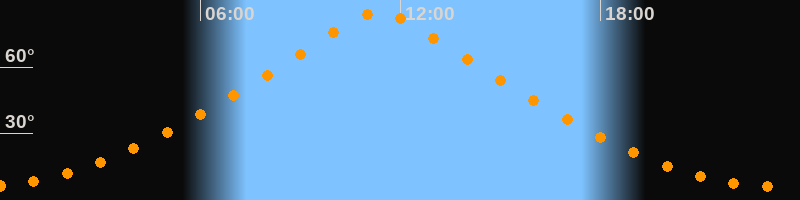 | Höchster Stand (Kulmination) | 11:21 Uhr (h = 84,7°) |