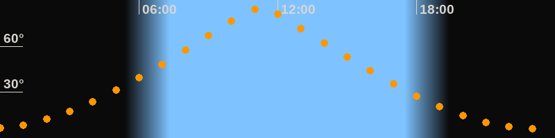 | Höchster Stand (Kulmination) | 11:14 Uhr (h = 84,7°) |