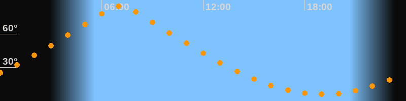 | Höchster Stand (Kulmination) | 07:06 Uhr (h = 84,7°) |