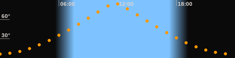 | Höchster Stand (Kulmination) | 11:45 Uhr (h = 84,7°) |