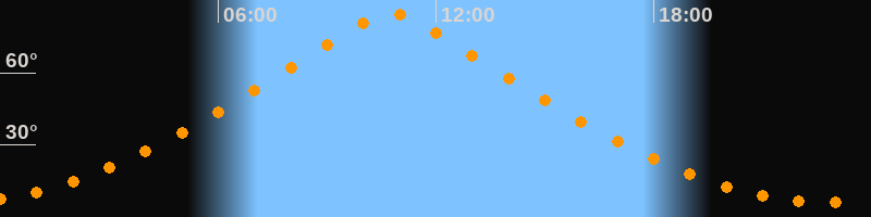 | Höchster Stand (Kulmination) | 10:46 Uhr (h = 84,7°) |
