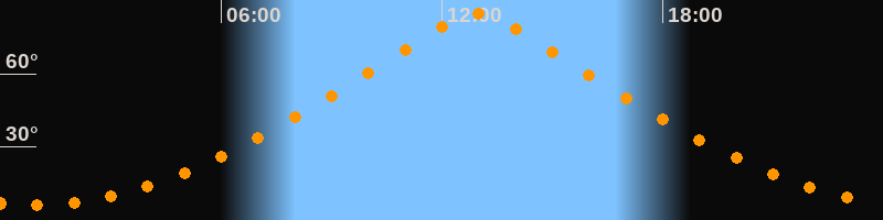 | Höchster Stand (Kulmination) | 12:57 Uhr (h = 84,7°) |