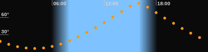 | Höchster Stand (Kulmination) | 15:54 Uhr (h = 84,7°) |