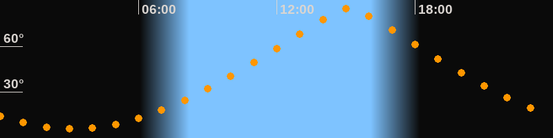 | Höchster Stand (Kulmination) | 15:07 Uhr (h = 84,7°) |