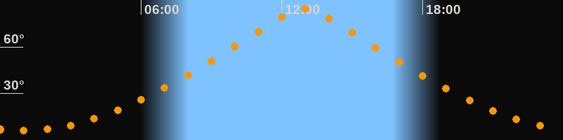 | Höchster Stand (Kulmination) | 12:58 Uhr (h = 84,7°) |