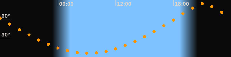 | Höchster Stand (Kulmination) | 21:07 Uhr (h = 84,7°) |