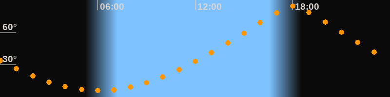 | Höchster Stand (Kulmination) | 18:01 Uhr (h = 84,7°) |