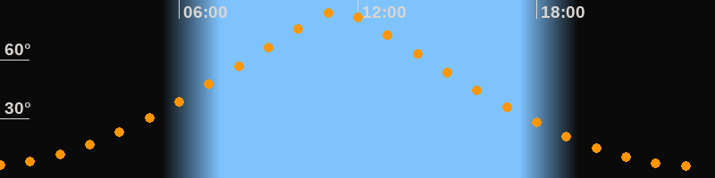 | Höchster Stand (Kulmination) | 11:20 Uhr (h = 84,7°) |
